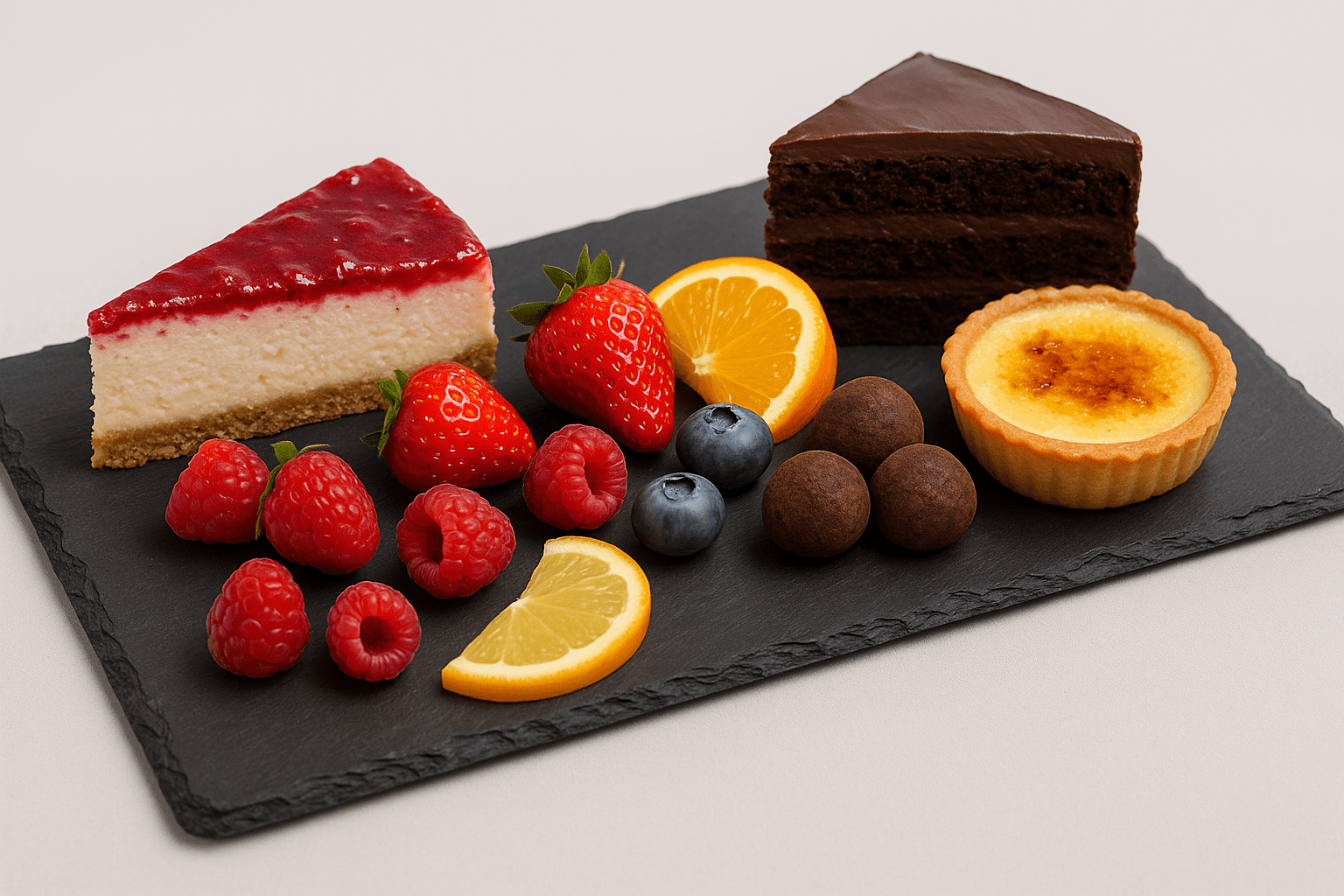 Bandeja de Pizarra Natural de 40 × 25 cm – Elegancia y Sostenibilidad para Postres Exquisitos