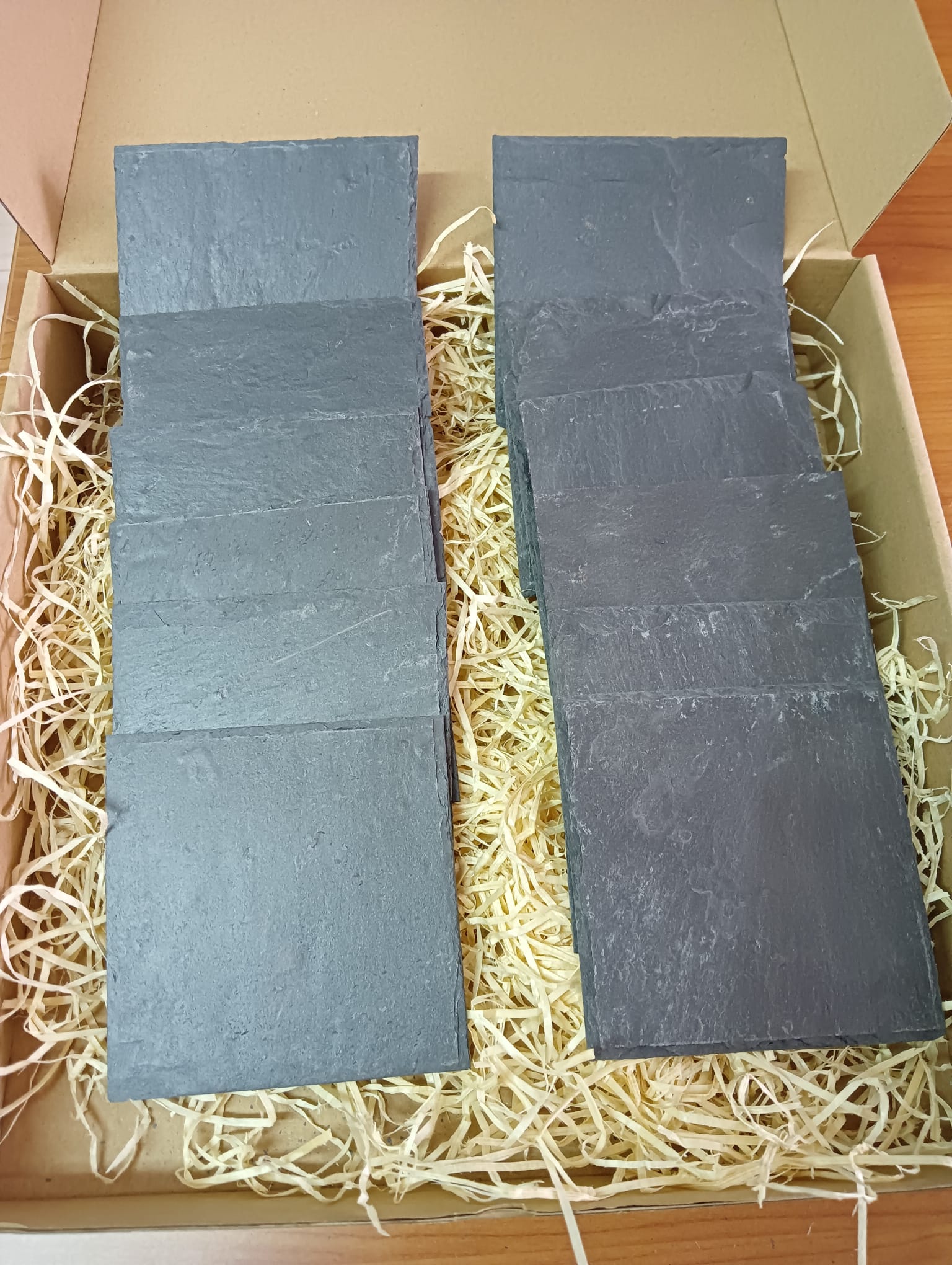 El posavasos cuadrado de pizarra natural de 10 × 10 cm es el toque perfecto para proteger tu mesa con estilo. Su textura oscura y natural crea un contraste elegante con tazas, vasos y copas, aportando un toque moderno y sofisticado a tu espacio.